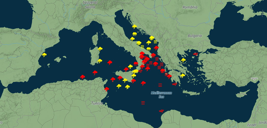 Un vórtice de baja presión, procedente del Mediterráneo occidental, se desplaza desde el Tirreno sur hacia el Jónico, trayendo lluvias y tormentas incluso intensas, ráfagas de viento y mares agitados en las cuencas meridionales. Se espera un segundo vórtice afro-mediterráneo durante el fin de semana: desde Túnez se moverá una vez más hacia el Jónico, provocando un nuevo empeoramiento con tormentas y vientos fuertes.