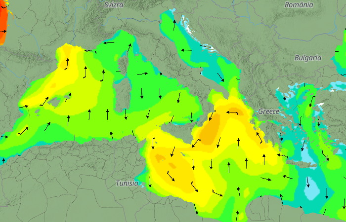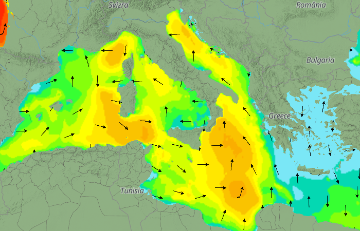 Mossi o localmente molto mossi i mari italiani; poco mossi o mossi i restanti bacini. Mossi o localmente molto mossi lo Ionio orientale ed il golfo del Leone. Generalmente poco mossi o mossi i restanti bacini.