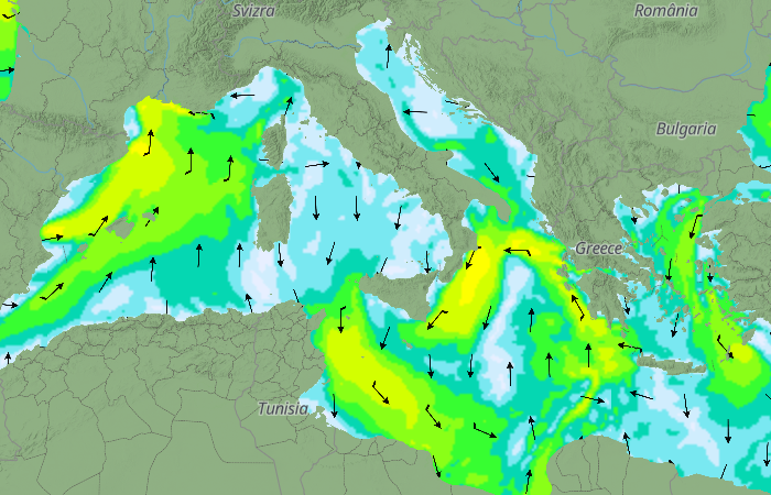 Moderati a circolazione ciclonica sui mari italiani con locali rinforzi da Sud-est su Adriatico e sullo Ionio. Deboli o moderati da Sud-Ovest sui mari occidentali. Deboli dai quadranti settentrionali sull'Egeo. In attenuazione sui mari italiani con tendenza a divenire deboli dai quadranti settentrionali. In rinforzo da Nord-est fino a divenire forti sull'Egeo occidentale. Sui settori occidentali si assisterà ad una graduale intensificazione della ventilazione fino a divenire moderata-forte dai quadranti meridionali. Forti o localmente molto forti da Maestrale sul golfo del Leone e mari occidentali. Graduale intensificazione con tendenza a disporsi da Ovest sui mari italiani; deboli o localmente moderati dai quadranti settentrionali sull'Egeo.